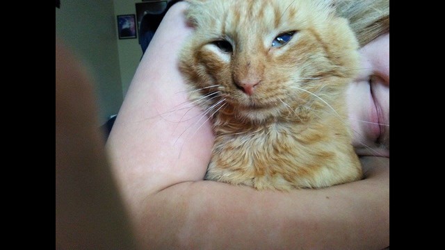 His angel promptly scooped him up and nuzzled his head. He purred. He was so happy and he thought he had died and went to Heaven! He has lived on the streets so long...he forgot humans can be kind and gentle. His body bears the tale of a street cat.