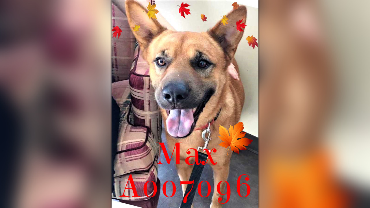 MAX is a sweet friendly GS boy weighing 56 lbs on intake who is dog and people friendly and finds himself in a kill shelter through no fault of his own and now on the URGENT kill list for space.