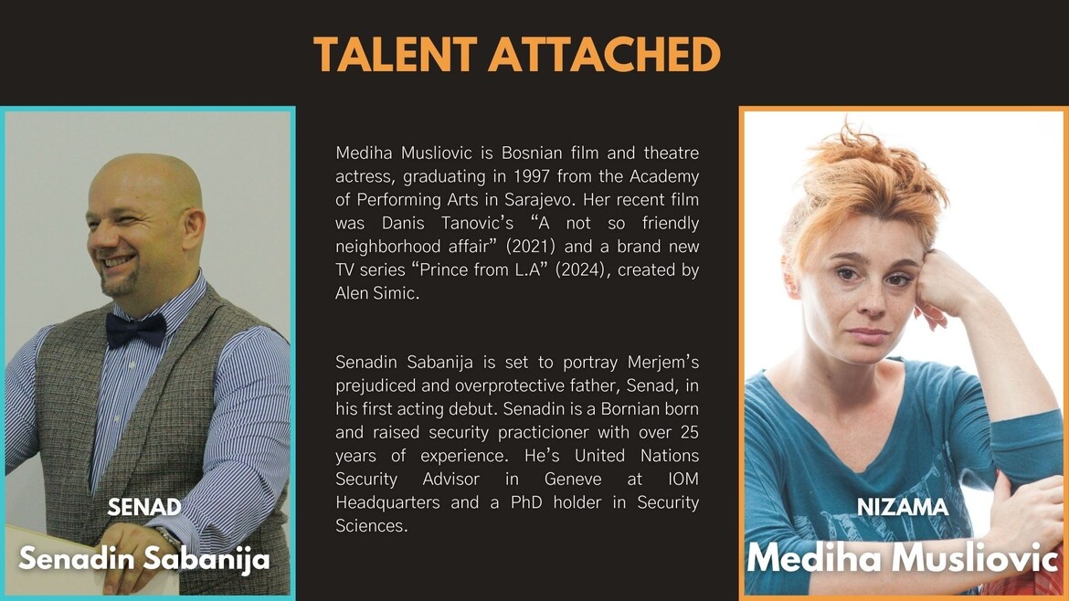 Senadin Sabanijais set to portray Merjem’s prejudiced and overprotective father, Senad, in his first acting debut. Senadin is a Bornian born and raised security practicioner with over 25 years of experience. Currently, he is an independent security contractor and a PhD holder in Security Sciences.