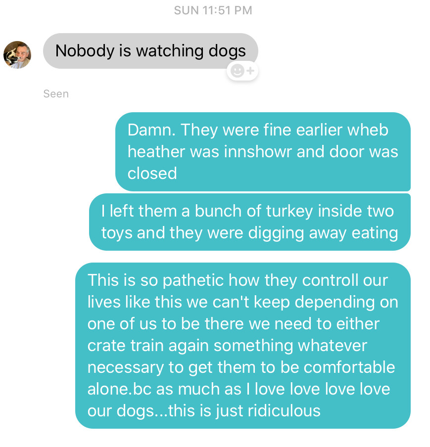 had no choice but to leave the dogs whether it was 10 minutes or 20