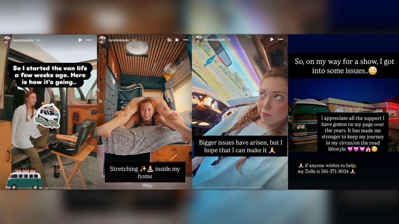 Hi, my name is Julie — many of you know me as BendableJulie (aka Medusa), a circus artist, contortionist, and performer who has been sharing my journey of van life, creativity, and resilience.