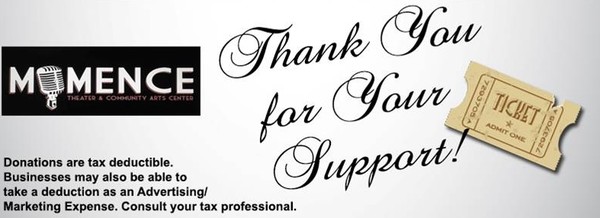For your $100 donation, you will receive (2) coveted Momence Theater T-shirts and (4) VIP tickets to our "Thank You" Party. The tickets get you seating in our VIP section and complimentary open bar before the entertainment starts.