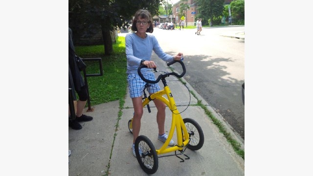 Recently. Sue saw a woman riding an A-Linker near the canal in Ottawa. Sue stopped her and asked her about the bike and, as you might guess, tried it out. The next day, Sue and Blair went to the Liquid Gym in Ottawa to speak to the co-owner and physiotherapist Karen to rent one for a week and Sue couldn’t stop talking about how great this bike was for her stability. The operation left Sue with difficulties with balance but the A-Linker allowed her to use her legs in a way that was much better than the walker she had been using. The A-Linker also allows her to be at eye level when speaking with someone, allowing her to walk along with someone. When you see her on the A-Linker you can’t help but positively respond to the huge smile Sue has on her face – “free at last!”