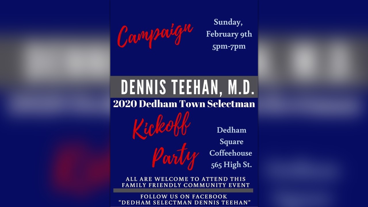 Help support Dr. Dennis Teehan in his campaign to win a third term on the Dedham Selectboard