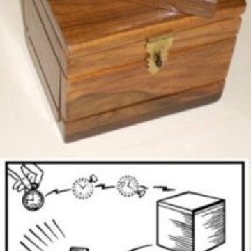 A wrist watch, ring, or other small object is borrowed from someone in the audience. The item disappears using the magicians favorite method. On display throughout the routine is a cardboard box. The magician opens the cardboard box and removes a very beautiful wooden box with a natural wood finish. The box is opened, and inside is another small box that is padlocked shut. The magician takes out a key, has a spectator open the box, and inside of course is the missing vanished object! This is a beautifully made prop based upon the old Lippincott box principle. Comes complete with the two wooden boxes and complete instructions. Use your own cardboard larger box or equivalent.