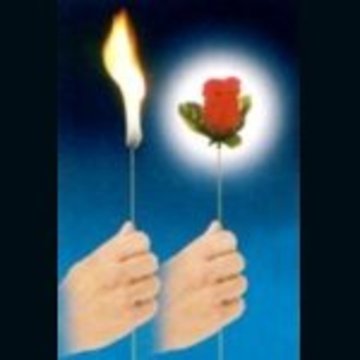 The removes a match from a large matchbox. He strikes the match lit. When he blows the match out, the match suddenly turns into a flower! This is a very old, simply, and very effective magic trick that is often overlooked. It is instantaneous, surprising, and fun to perform. This is a great way to light a Fantasio Vanishing Candle.