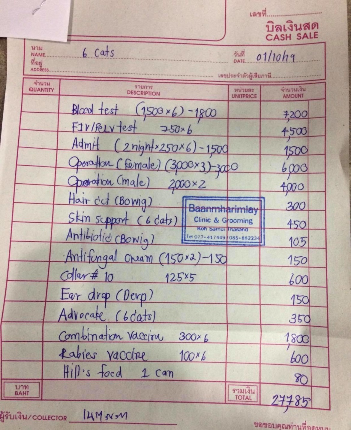 This amazing couple have now spent around $1300 USD / 40,000 baht trying to save this sweet cat family! They paid for all 6 cats to be tested, vaccinated, and sterilized, just so they could be prepared to go into loving new homes and have the great lives they deserve! The couple are not able to take them home, so they have also paid for boarding until we can find adopters. (more on that in a bit).