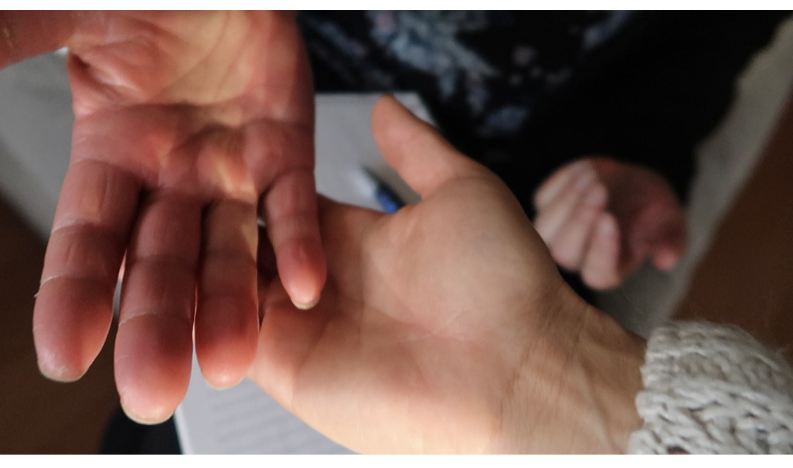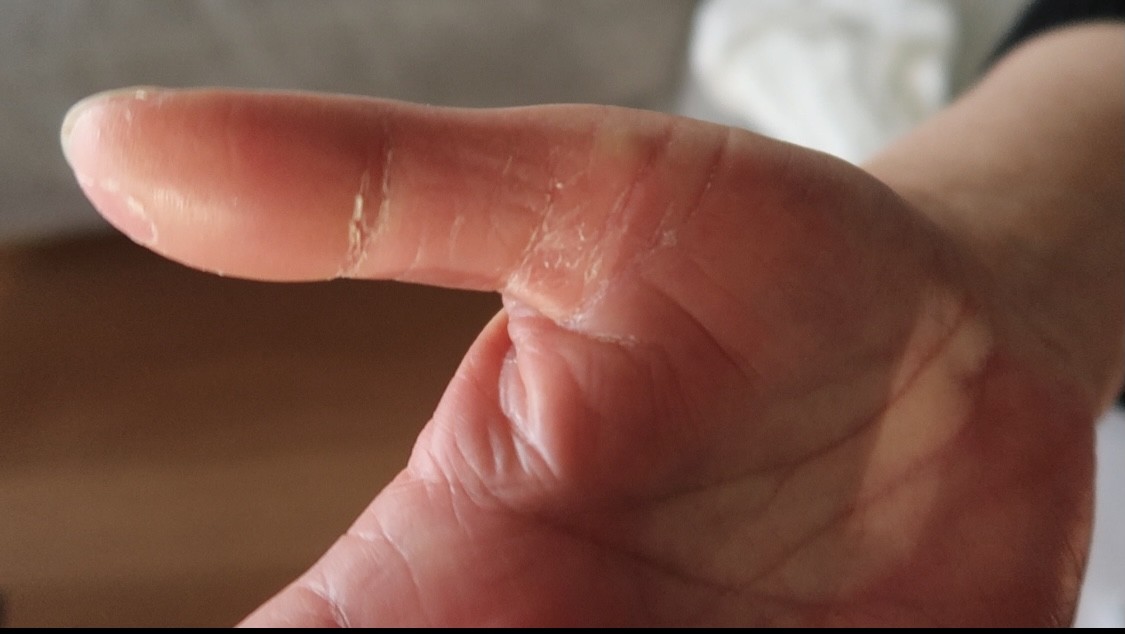 (hand & feet get swollen, red and cracking) She needs to ice them