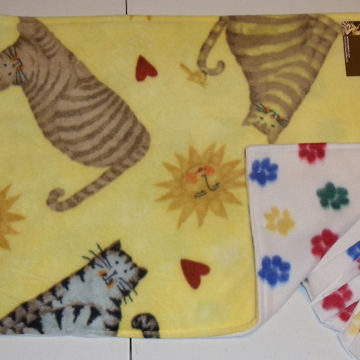 This reversible Kitty Pad is hand made by our staff from two layers of 100% Polyester Fleece with a layer of batting for fill and cushioning. Dimensions: 19 inches x 28 inches (+/- 1 inch). Actual Color and Pattern may very slightly from sample shown in photos. Actual pattern is limited to available fabric pattern on hand at the time of shipment. If item is not available, we will contact you and if requested, will issue a full refund of your donation. Each Kitty Pad has a double seam. Content: 100% Polyester Fleece Care: Machine Wash Cold; No Bleach; Tumble Low; Warm Iron if Needed. Materials are Made In China Item is hand made by our staff in USA.
