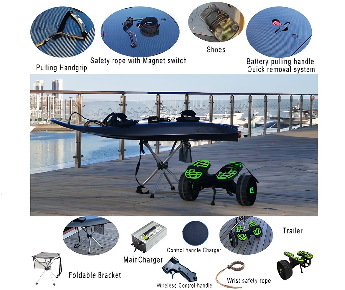 Surfboards can be guaranteed to operate continuously under high current and high power conditions There are at least 1200 charging cycles. 50Ah high-capacity battery pack for more than 60 minutes of battery life.