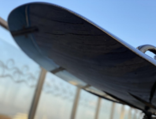 Our surfboard is made of all-carbon fiber and uses thermocharged
