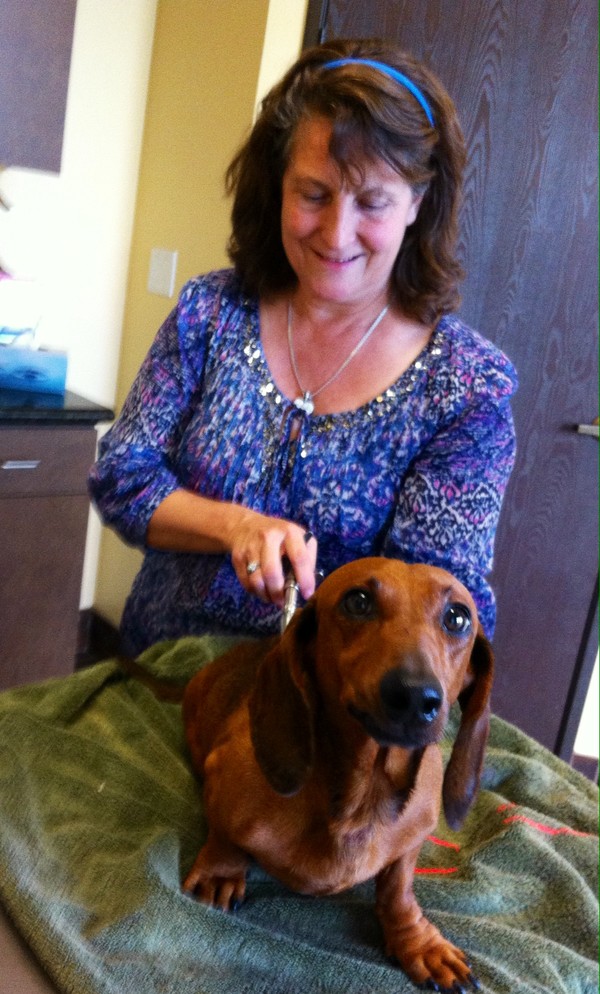 Dash is a pure bred Dachshund with the classic look, demeanor (and back problems) of a Doxie. We are not sure if he was born this way or underwent trauma, but several slipped discs, severely inflamed shoulders and muscles which are not completely atrophied yet would imply he was dropped or hit or underwent trauma. He has sores on his feet and legs from dragging himself around, which unfortunately is a sign he may have irreversible paralysis. His paralysis will NOT prevent him from leading a very active, happy, competent life, we just have to get a complete picture of his issues in order to game plan properly.This diagnosis isn't holding us or him back from seeking answers and trying to increase his quality of life. Darcel, his foster Mom, has taken him to see renowned chiropractor, Dr. Nelson, several times and he is showing signs of improvement. His feet are not receiving messages from his brain but the muscles in his lower half are showing reflex. He's also scheduled to see an acupuncturist to help relieve some of the tension in his shoulders. Once Dash has his wheels, he is headed to foster with renowned trainer and pack leader, Angela Adan. Angela has a paralyzed Doxie named Ferris who is the perfect role model for Dash. Ferris leads an inspirational, productive, pain free life and, with your help and a little luck, Dash will have a similar outcome. Please donate what you can and share this post thoroughly so we can get this wonderful Weiner-dog some wheels and adequate treatment!We look forward to sharing Dash's journey with you.