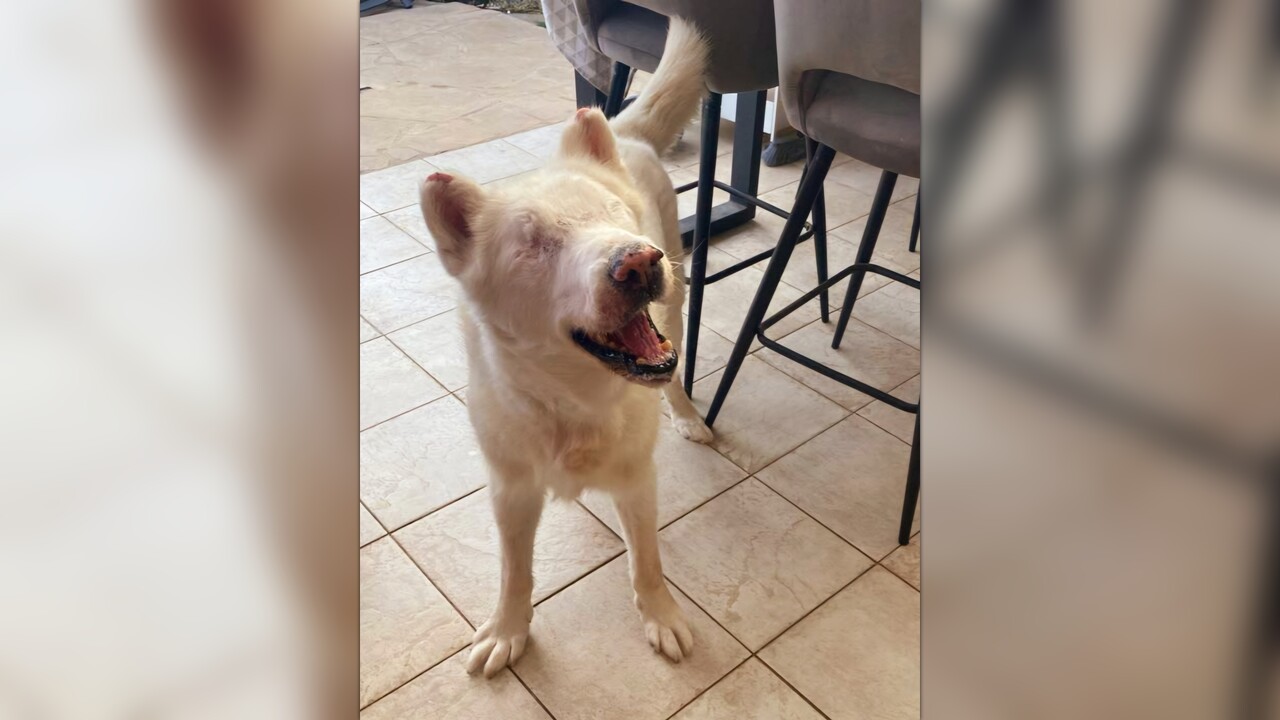 Bear was found dumped in the forest, abandoned by his owners, and left to die. Bear is completely blind. He had painful ulcerated eyes, malnourished and too weak to walk - who ever left him knew his fate.