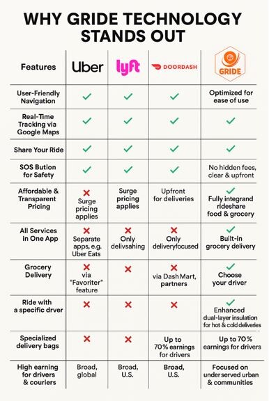 Gride Technology is an all-in-one AI-powered platform revolutionizing how underserved communities access critical services like ridesharing, food, grocery, and package delivery. Founded under the umbrella of Ride Now 1981, Inc. Gride aims to provide intelligent, responsive, and affordable tech-driven solutions that empower businesses, elevate customer experience, and create inclusive economic growth.