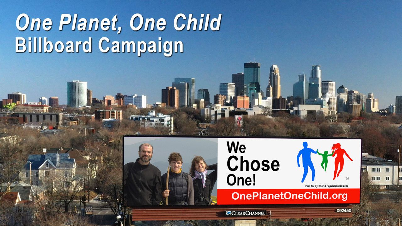 Continue and expand nationwide a billboard campaign creating broader public awareness that the world is overpopulated, that the problem is solvable, and the solution is to freely choose smaller families.