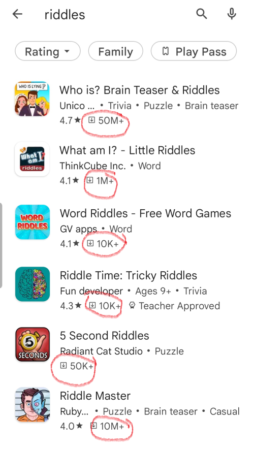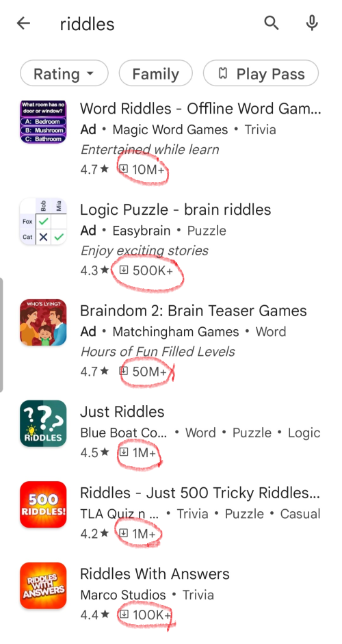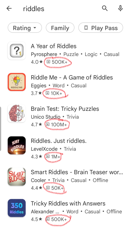 A: Definitely! Between puzzles, riddles and other brain teasers, there are hundreds of mobile apps on the Android and iOS app stores that reflect tens of thousands to millions of users per mobile app. However, more notably, most if not all of the mobile apps on these app stores are not play-to-earn!