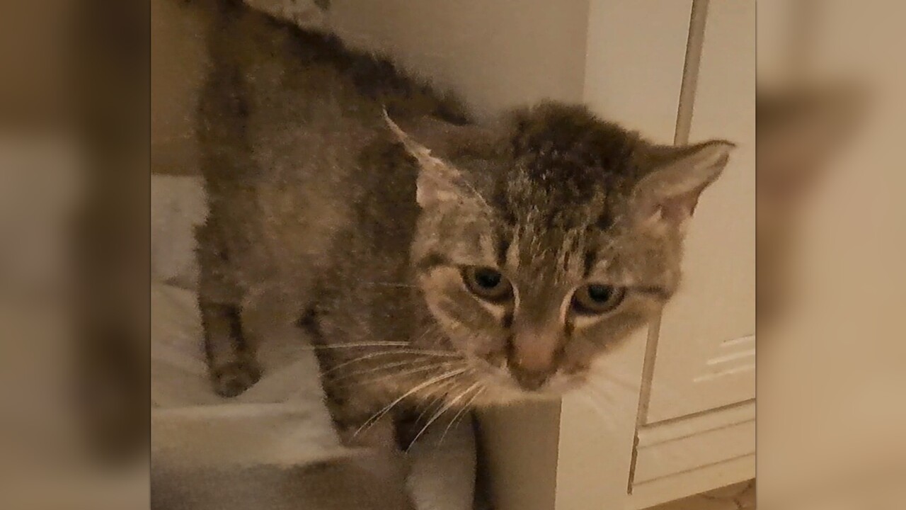 This sweet cat is just beginning to learn what it's like to live inside and trust humans. Please donate. Anything helps.