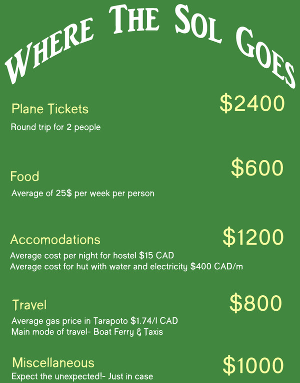 Here is our bare bones expense report for our 3 month adventure, the work is volunteer so all costs are to be covered by us.
