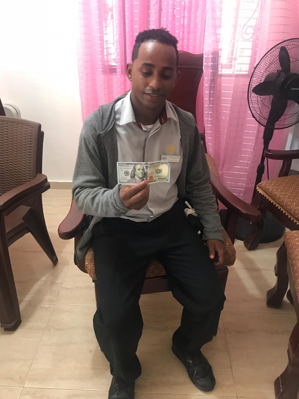 photo was taken in Amarilis' home with the $100 Karen sent. Another