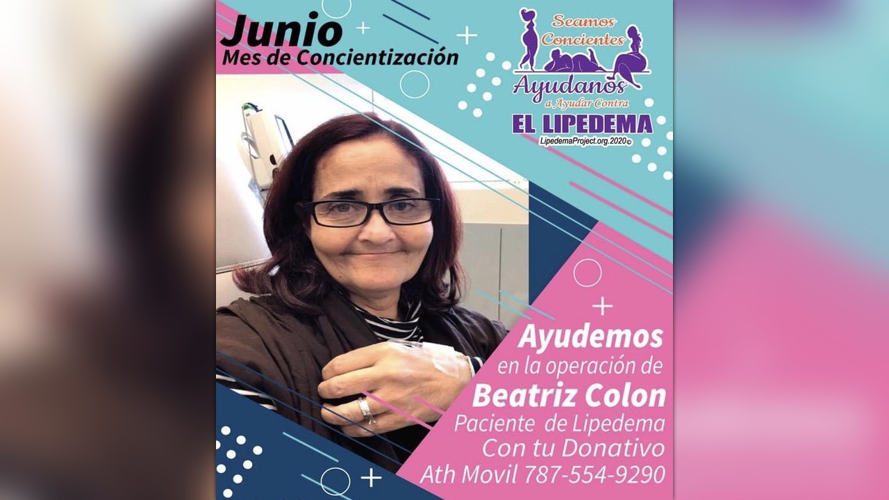 Beatriz Colon fue diagnosticada con Lipedema una condición que afecta sus extremidades. Esta condición poco conocida solo se puede atender con una cirugía de liposuccion asistida por agua que se califica como estética por lo que los planes médicos no la cubren. Esta no se hace en Puerto Rico por lo que tiene que viajar a EU para la misma. Su movilidad depende de esta cirugía. Ayudanos a que Beatriz tenga calidad de vida.