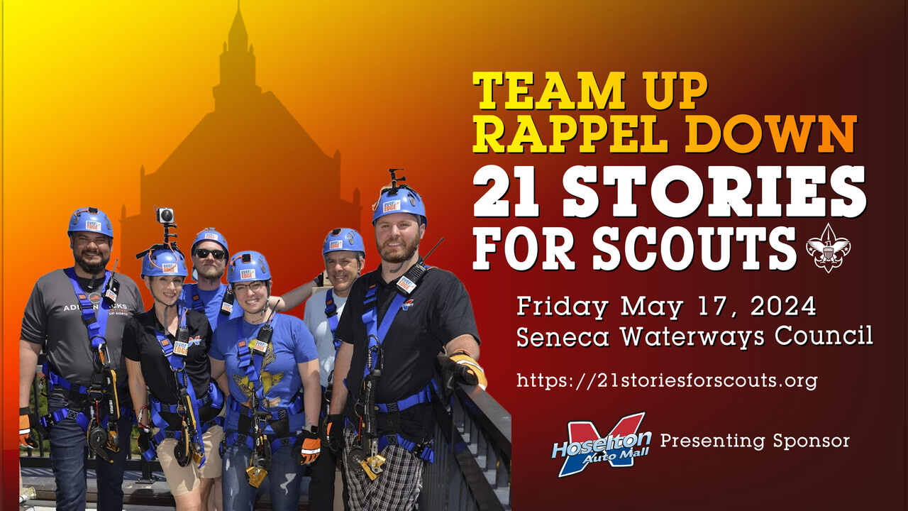 Rappel 240 feet down the Kodak Tower on Friday, May 17! What's even more thrilling is the impact you can have on the youth in our urban Scouting programs. Sign Up Today!