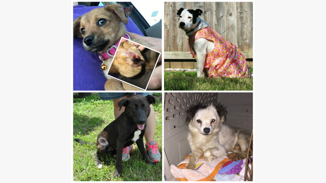 Annie (top left) entered the shelter as a stray with injuries that appear to be from another animal. She is missing a huge chunk of her ear and has bruises and scabs on her torso. She will need immediate medical care.