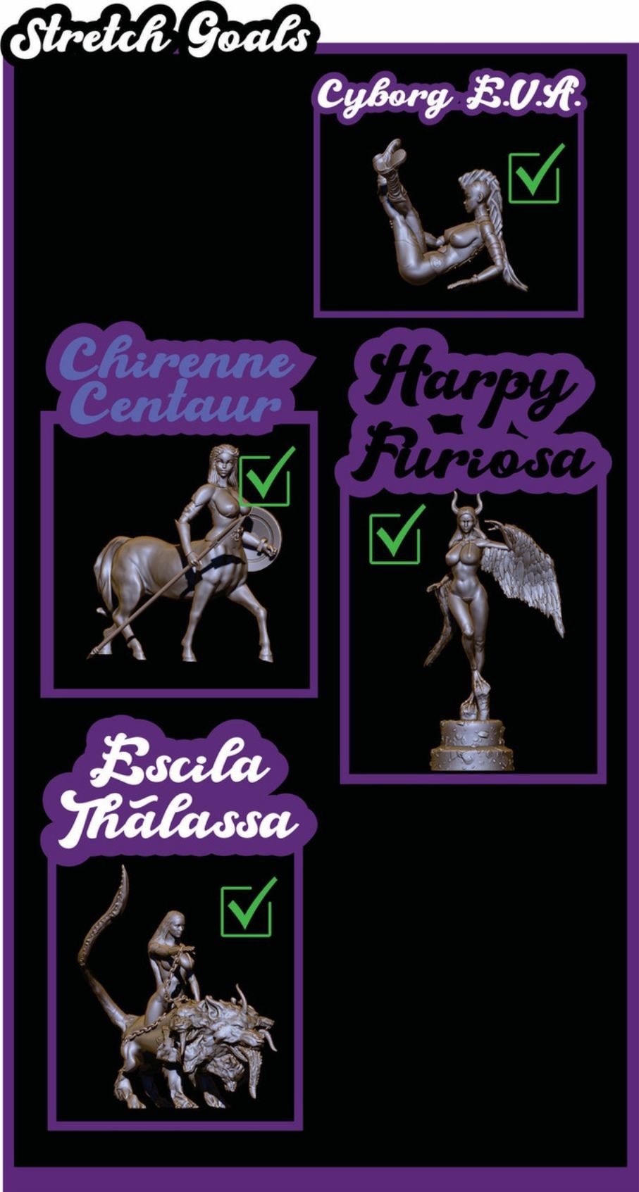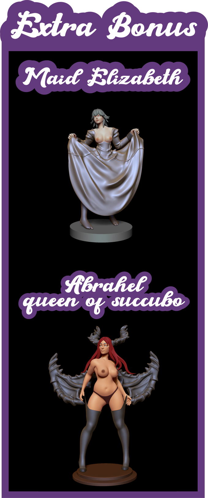 - For this project we wanted to create decorative pinup models and / or board games, we worked creating sculptures in quite detail, we tried to create a fusion between the brutal, that is to say both human and mythical women and to show their ferrosity as well as their innate sensuality, We hope you like it and consider supporting the project, this helps and encourages us to continue creating more and better sculptures for all of you.