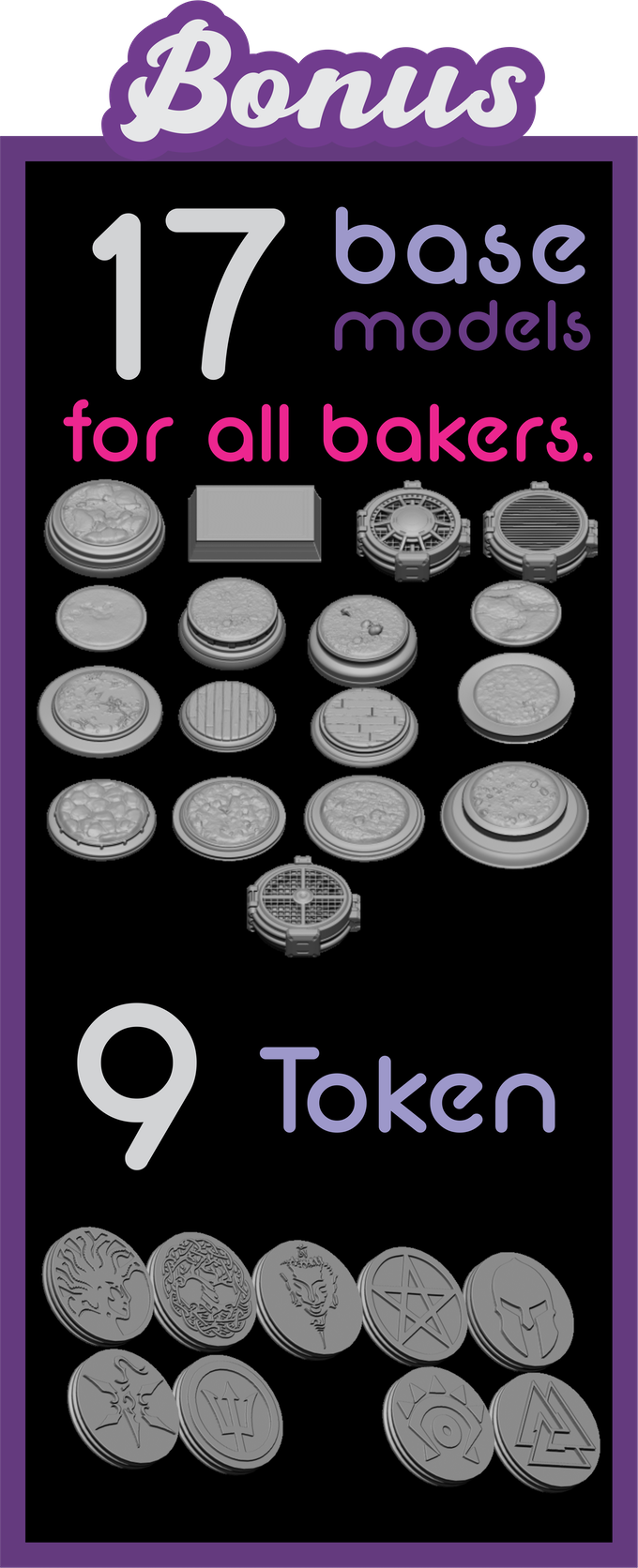 You take 9 models in its core set, 6 human models and 3 mythological models, in addition to the stretch goals that we manage to release, all are delivered in STL and OBJ digital format in a version with included base, without base and with separate base, they are models exported in high quality.