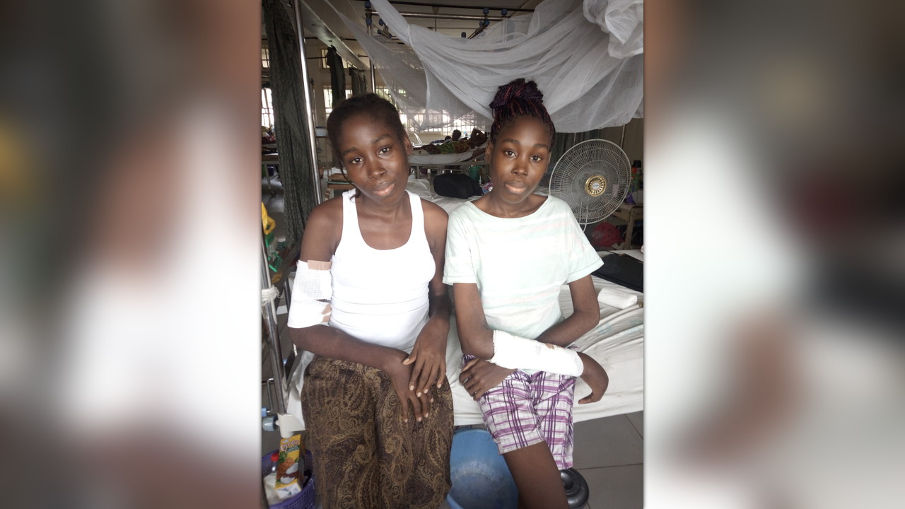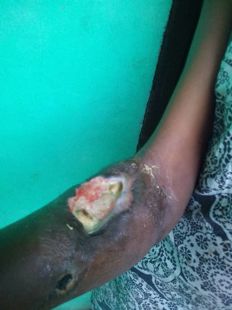 The Doctors at Rehoboth Specialist Hospital in Port Harcourt in Nigeria where they have been on admission for 48 days as at this write up (Admitted just before the new year, 2019) says they need surgery to straighten those arms when the ulcer is relatively healed (contracture release surgery).