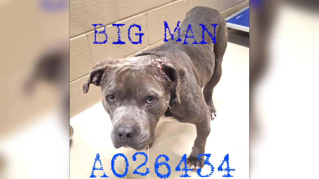 BIG MAN - MALE - WEIGHING 74 LBS AND finds himself in a kill shelter through no fault of his own and now on the URGENT LIST FOR SPACE. HE needs commitment by 4 pm on Friday, February 27 or face being euthanized for space.