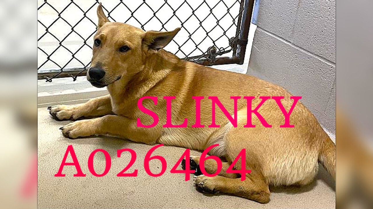 SLINKY - MIX BREED -FEMALE - WEIGHING 37 lbs finds herself in a kill shelter through no fault of her own and now on the URGENT LIST FOR SPACE. She needs commitment by 4 pm on Friday, MARCH 6 or face being euthanized for space.