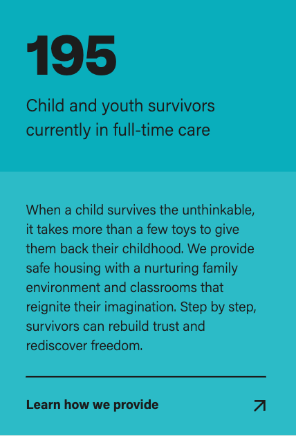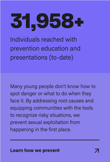 When sex trafficking and exploitation try to take childhood away, we rally everyone and everything needed to protect it.