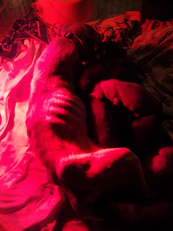 After a fairly restless night with her pups in a warm bed with a heatlamp, her rescuer noticed Sandyoak straining to use the bathroom. Upon examination by the Vet the next day, we determined she was suffering from megacolon--an enlarged lower intestine due to compacted feces. While this is more common in cats than dogs, the problem can be genetic, poor nutrition, tumor or trauma to the lower abdomen. We are unsure how she acquired it. To add more to her complications, Little Sandyoak was also found to be heartworm positive.