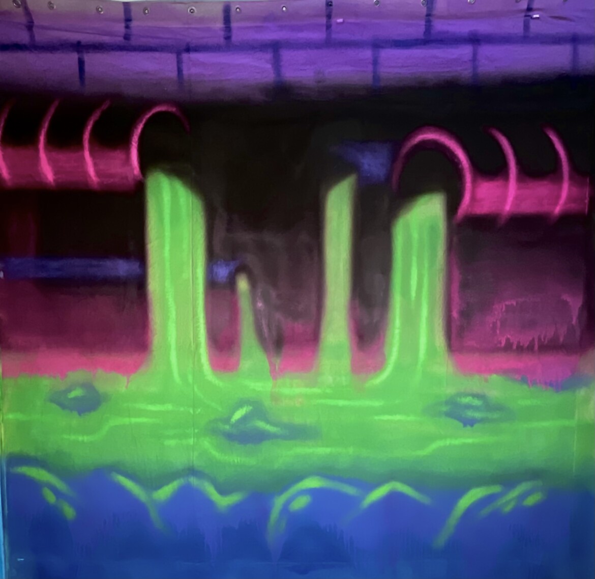 One of a kind painted backdrops used behind our pit of jello. Very heavyweight fabric with grommets for hanging as a curtain. Take one home by putting your bid down at this Silent Auction.