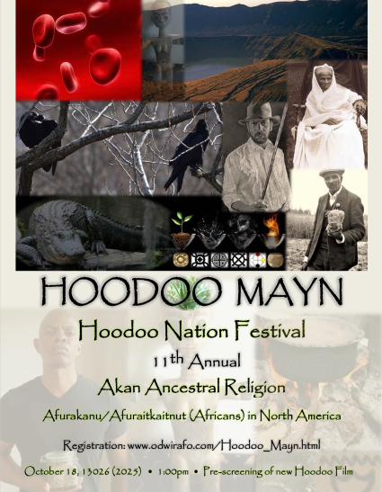 We released our documentary film HOODOO: Akan Ancestral Religion in North America on October 17, 13024 (2023). We have received great reviews for our work. We made our film accessible for free on our Odwirafo youtube channel in April of last year. Watch our film here: