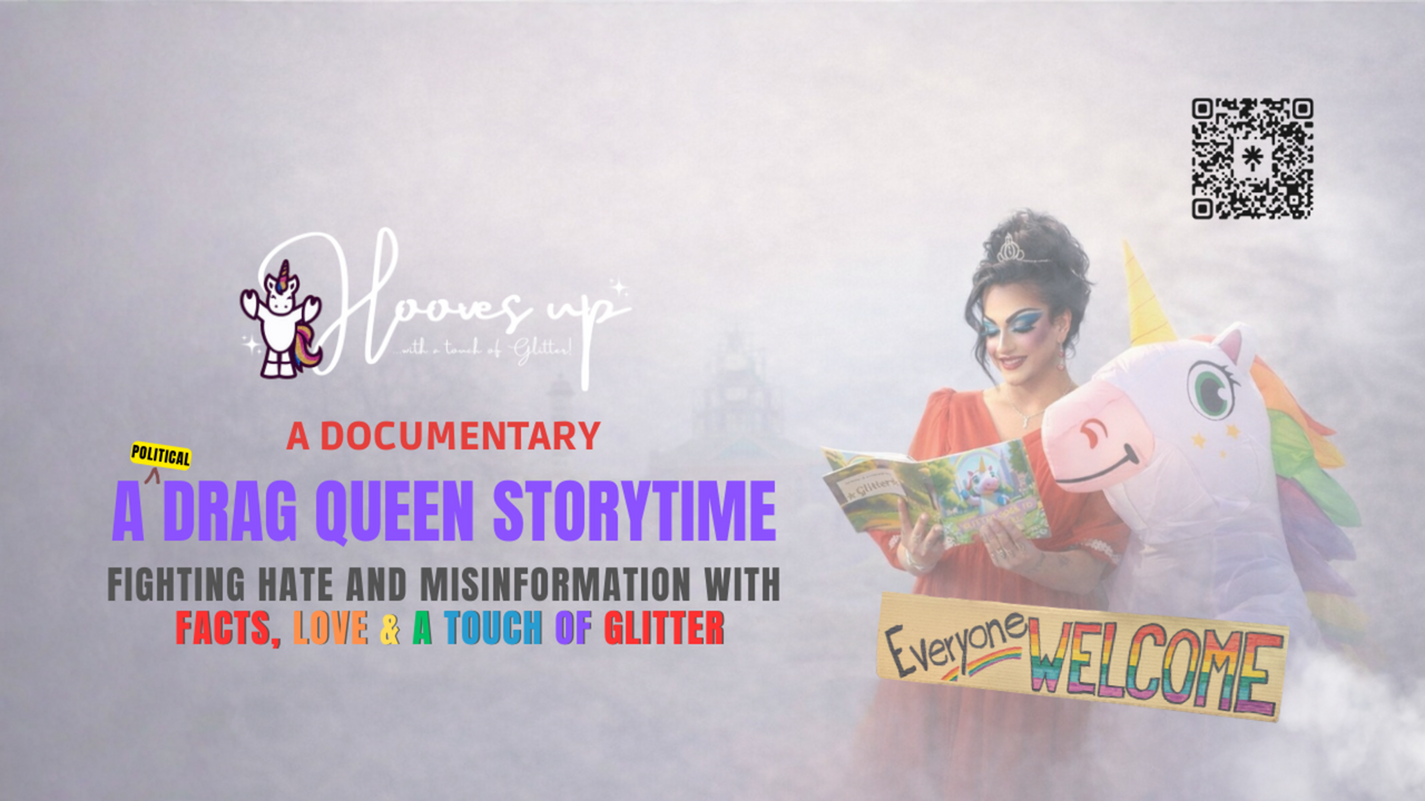 Instead of relying on traditional storytelling, Glitter the Unicorn and Yvonna the Drag Queen bring real community experiences to life through storytime performance, sharp humour, and theatrical sparkle, while a newsroom lens grounds every moment in verified fact.