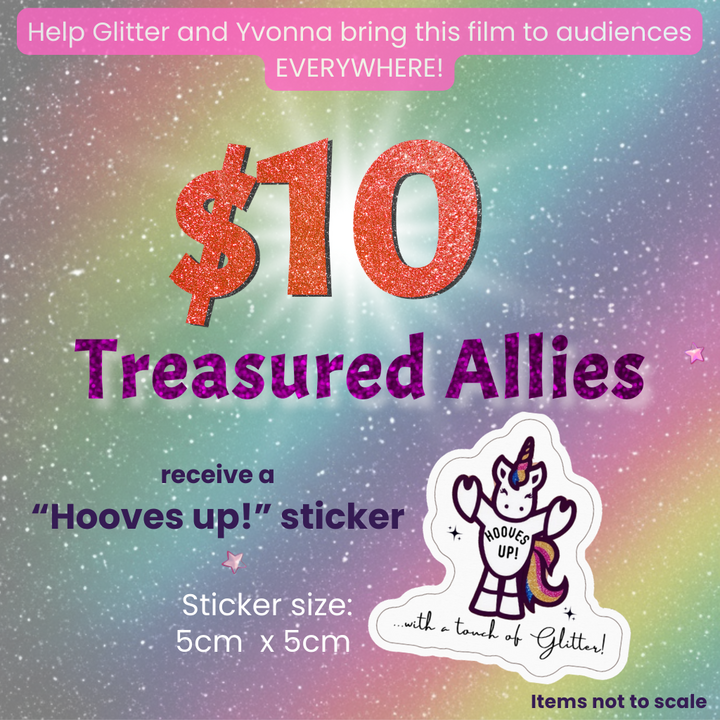 Every Ally is a 'Treasured Ally'!  Every contribution brings us closer to our goal. For your contributio we'd like to send you one of our "Hooves up! ...with a touch of Glitter" stickers. They are the perfect size for a phone, locker, or anywhere it can go that will remind you that you are part of a growing community combating misinformation and fear with truth and love. We are so pleased you are here!