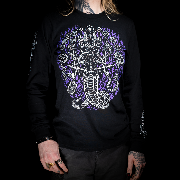 Ruby's mesmerizing longsleeve —printed locally on a 100% cotton tee and made in the USA with organic materials.