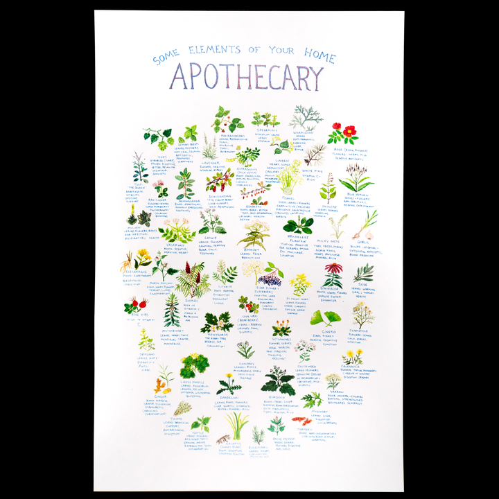 A beautiful 11x17" watercolor rundown of plants and their uses by Hunter; signed.