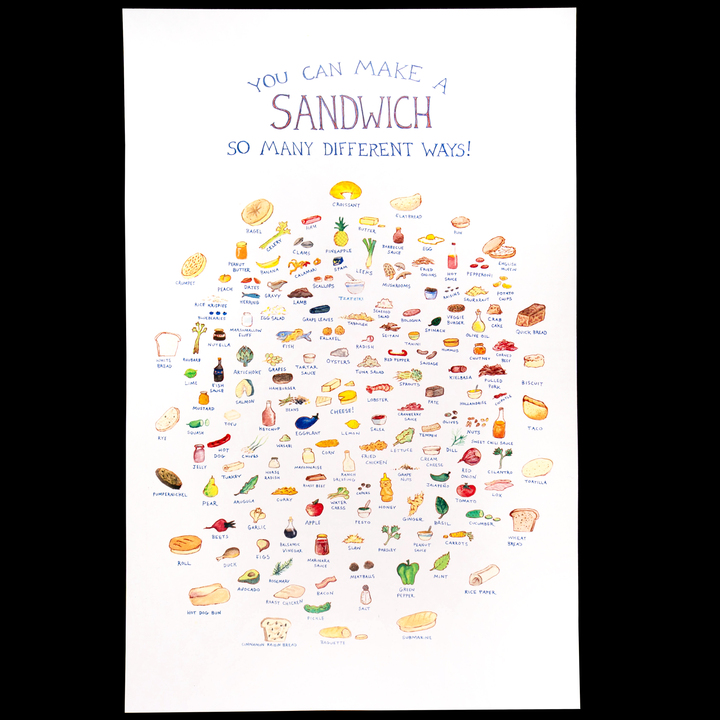 A bright 11x17" print of Hunter's watercolor that depicts everything you might put between two slices of bread; signed.
