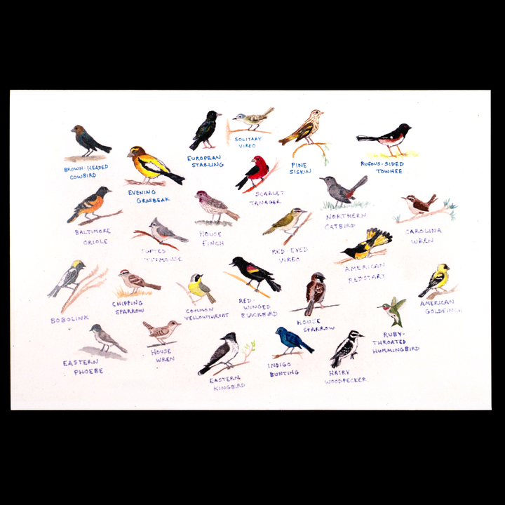 Hunter's piece of unofficial bird taxonomy in beautiful colors, plus a hand-written thanks sent to you!