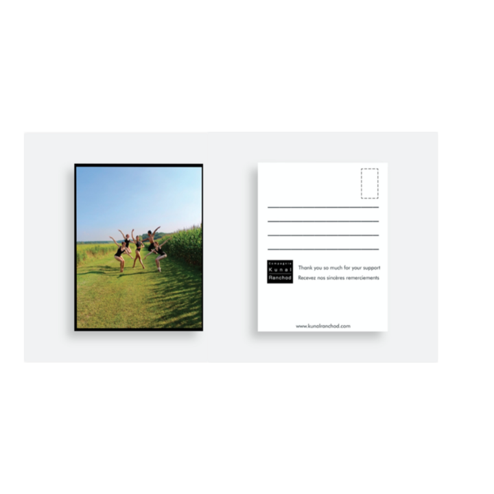 Receive a postcard with a personal thank you and a beautiful photo of our dancers| Recevez une carte postale avec un remerciement personnel et une belle photo de nos danseurs