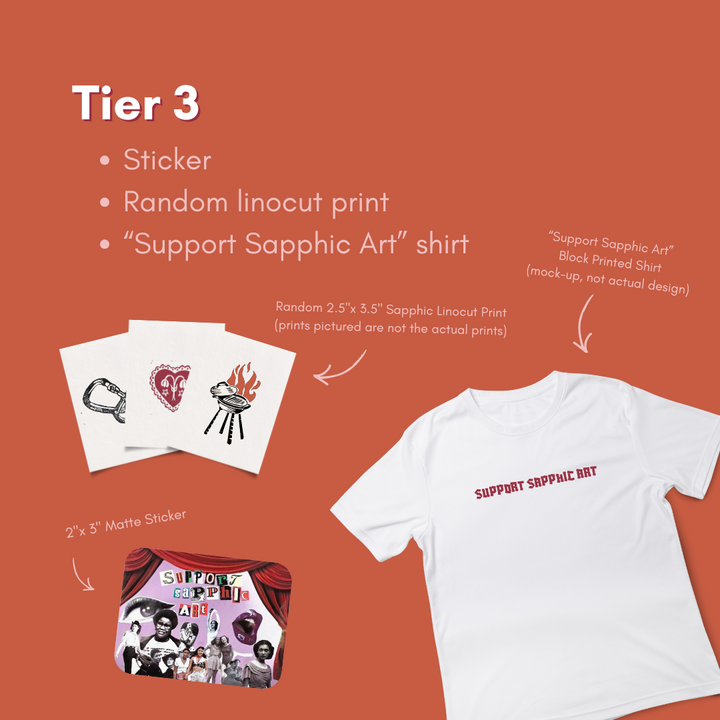 • Block printed "Support Sapphic Art" T-shirt