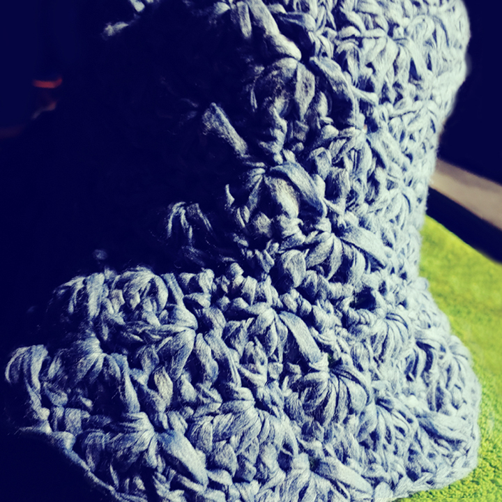A Spring-Summer gardening hat hand crocheted in washable cotton that can fold up and go into your pocket or bag to take wherever you are and whether as garden bonnet or sun hat, you can adjust the tie for your look; in jute and blue multicolor accents, sage green with purple multicolor accents or other colors to be agreed later. Please machine or hand wash, dry flat.