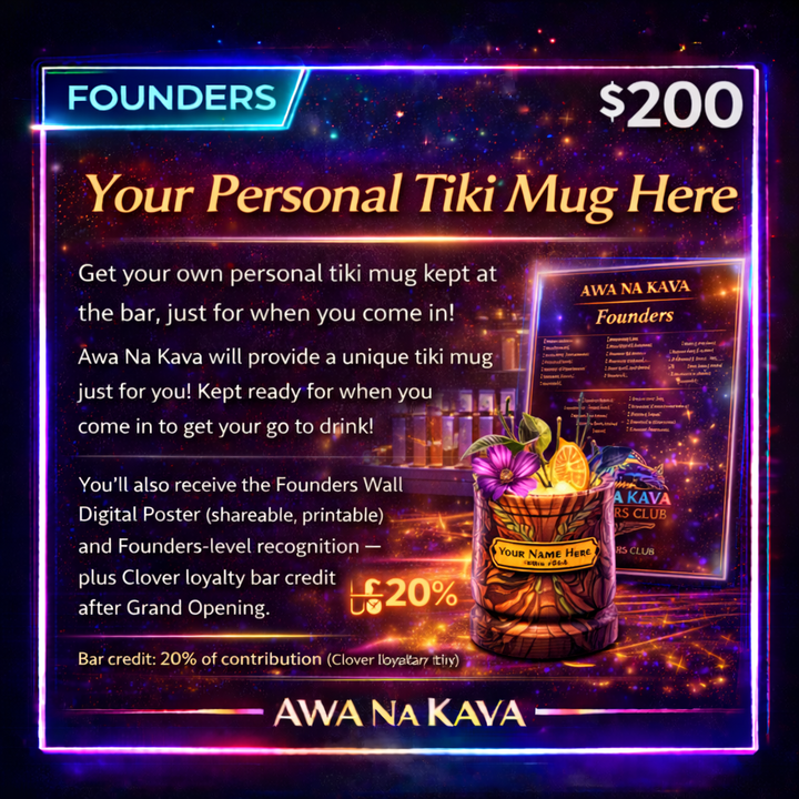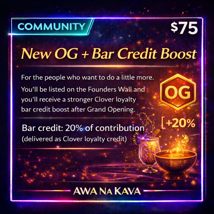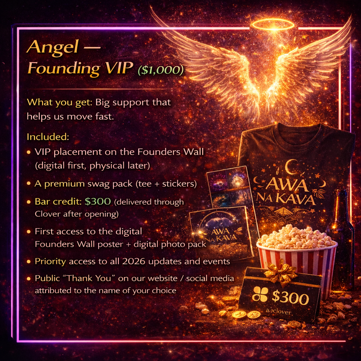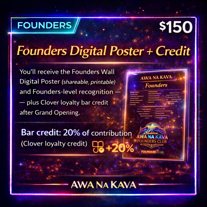 You’re a Community Supporter . You’ll be on the Founders Wall — and you’ll get an Awa Na Kava Sticker Pack as our thank-you.