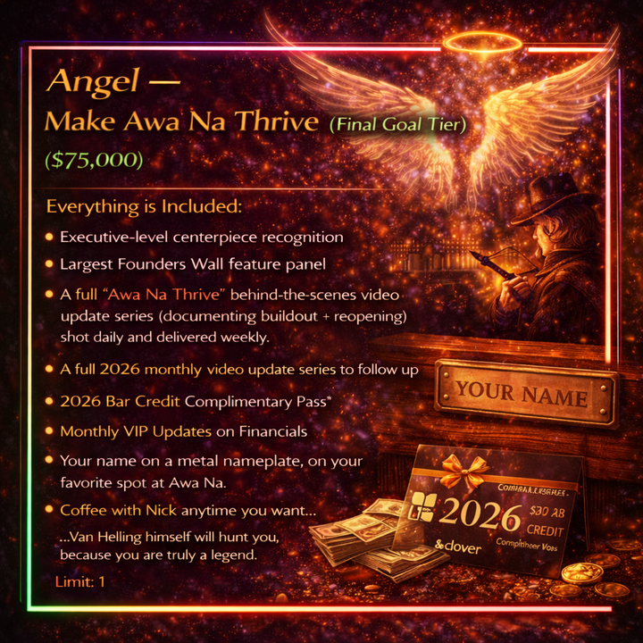 You’ll receive the Founders Wall Digital Poster (shareable, printable) and Founders-level recognition — plus Clover loyalty bar credit after Grand Opening.