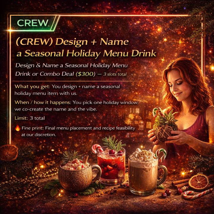 Design & Name a Seasonal Holiday Menu Drink or Combo Deal ( $300 ) — 3 slots total