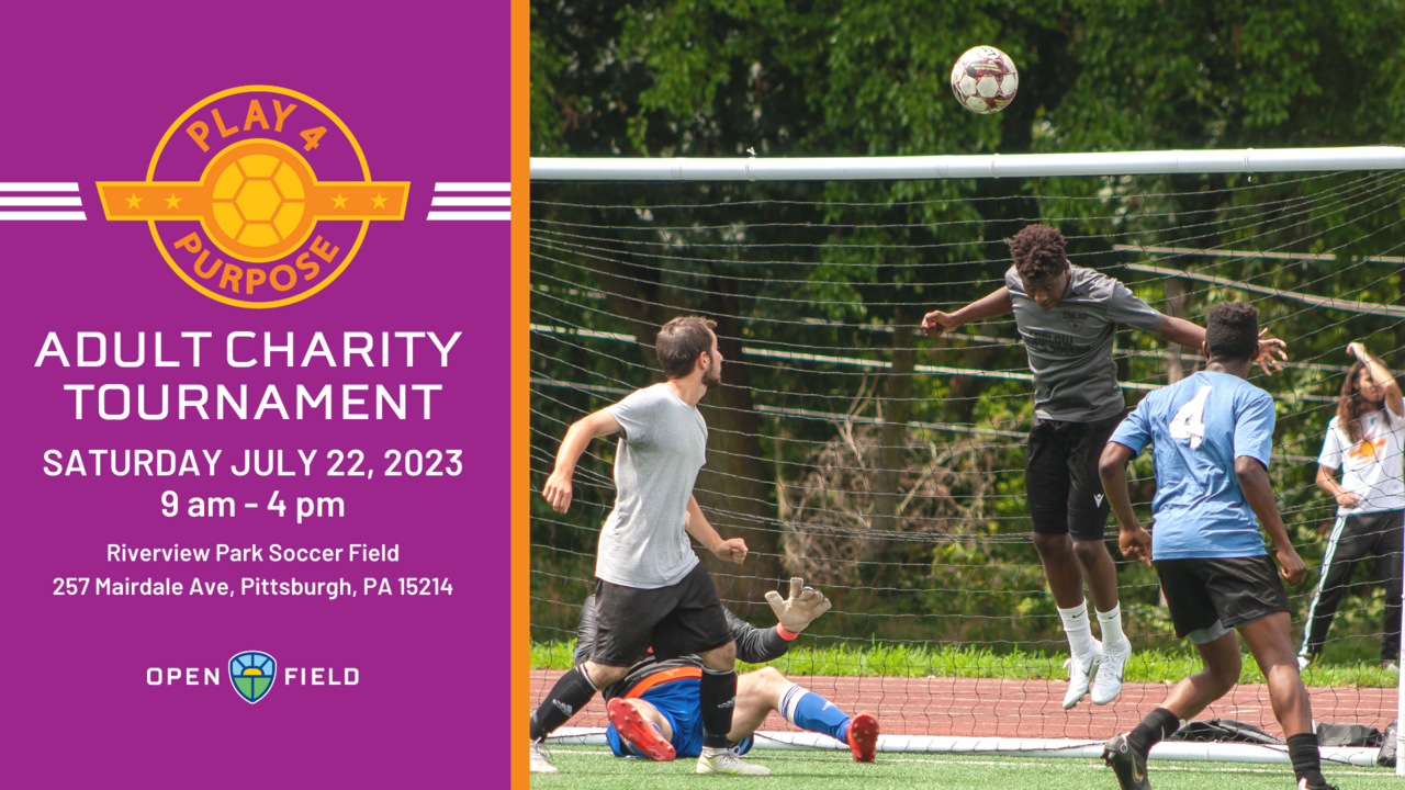 Open Field's mission is to improve the lives and futures of youth through sport. PLAY4PURPOSE connects people's passion for soccer with community impact, raising funds to make a tangible difference in neighborhoods in Pittsburgh and West Africa.
