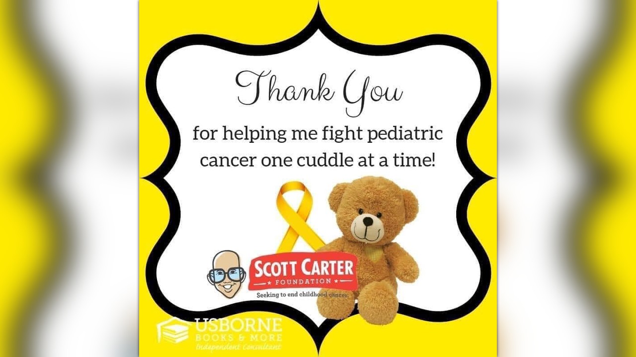 September is Pediatric Cancer Awareness Month, so I'm working to send several Cuddle Bear Book & Plush sets to comfort kids currently battling cancer in hospitals around the nation! :) Each donation is matched by Usborne Books & More at 50%!