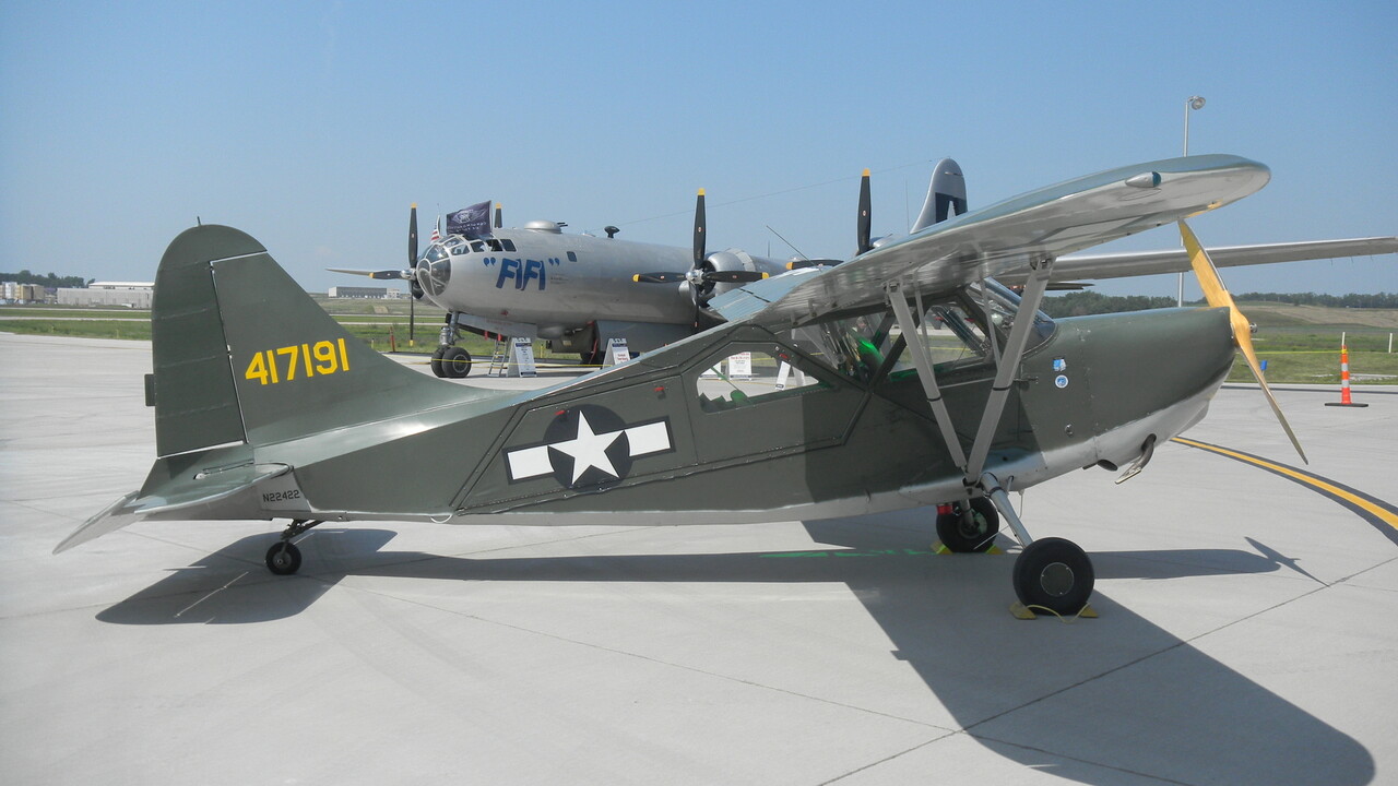 The CAF Joe Foss Squadron flies a Stinson L5B that actually saw combat in WW2 as an artillery spotter for the 71st Infantry Division.